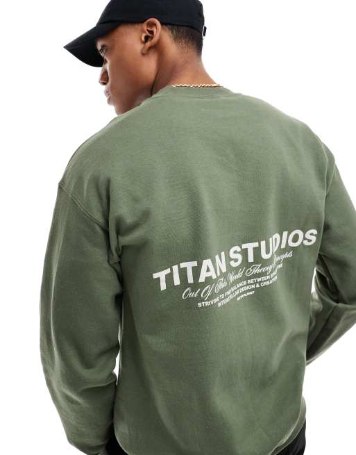 ASOS DESIGN – Oversize-Sweatshirt in Dunkelgrün mit Text-Print