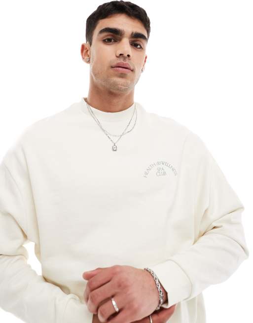 ASOS DESIGN – Oversize-Sweatshirt in gebrochenem Weiß mit Sport-Print