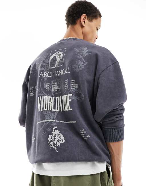 ASOS DESIGN – Oversize-Sweatshirt in Grau mit Rückenaufdruck