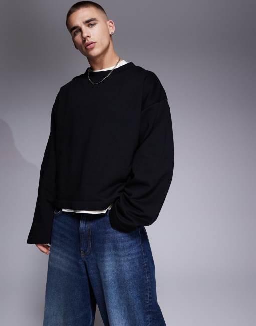 ASOS DESIGN – Oversize-Sweatshirt in Schwarz mit festem Saum