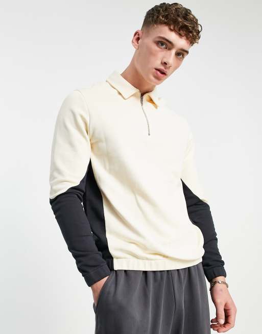 ASOS DESIGN – Oversize-Sweatshirt mit Polokragen, halblangem Reißverschluss und Blockfarbendesign