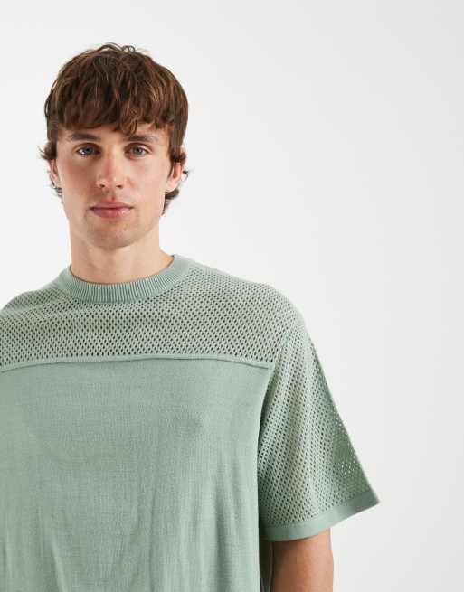 ASOS DESIGN – Oversize-T-Shirt aus Häkelstrick in Salbeigrün.
