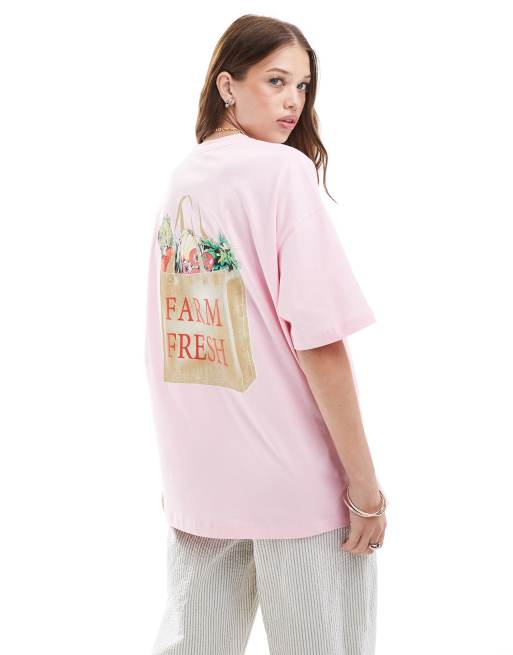ASOS DESIGN – Oversize-T-Shirt in Babyrosa mit „Farmers Market“-Grafikprint