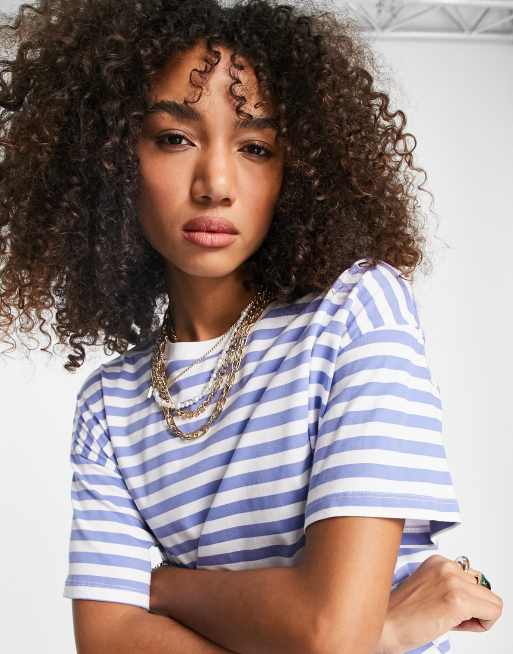 ASOS DESIGN – Oversize-T-Shirt in Blau und Weiß gestreift