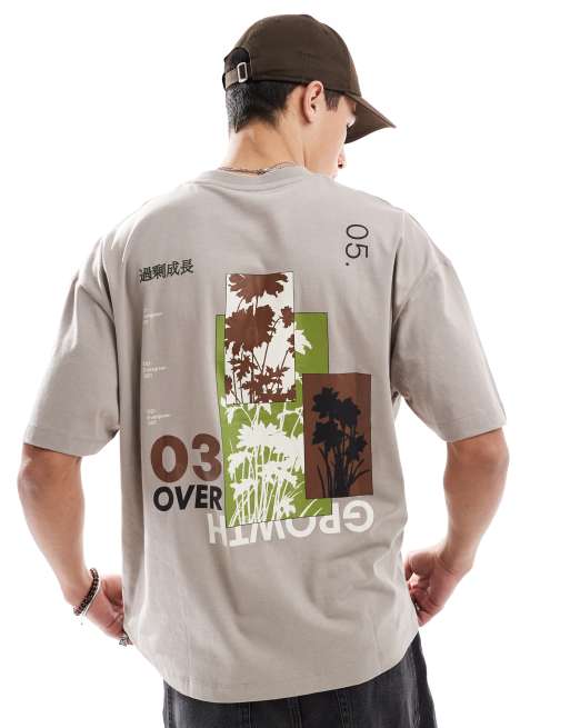 ASOS DESIGN – Oversize-T-Shirt in Braun mit Blumen-Grafik
