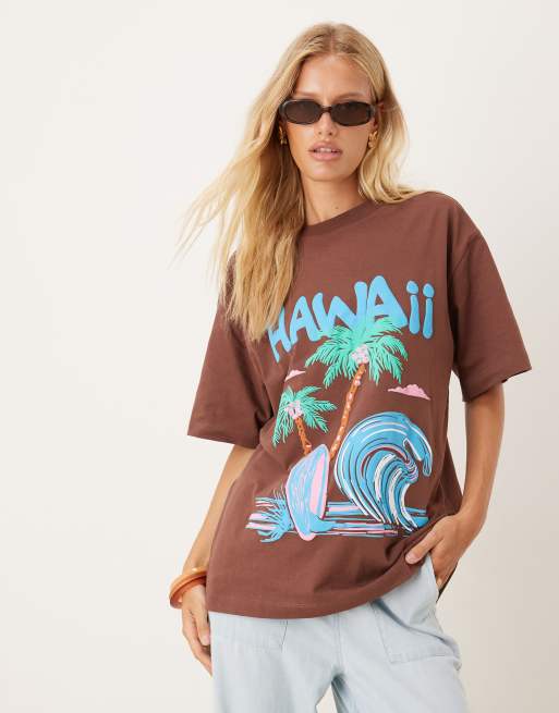 ASOS DESIGN – Oversize-T-Shirt in Braun mit „Hawaii“-Print
