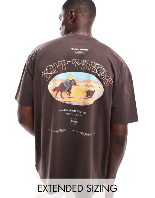 ASOS DESIGN – Oversize-T-Shirt in Braun mit Print hinten