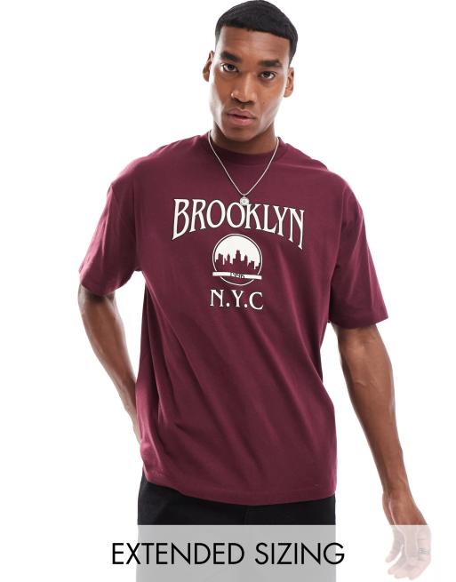 ASOS DESIGN – Oversize-T-Shirt in Burgunderrot mit City-Print auf der Vorderseite