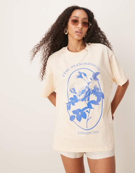 ASOS DESIGN – Oversize-T-Shirt in Buttermilchgelb mit „Blooming“-Blumenprint