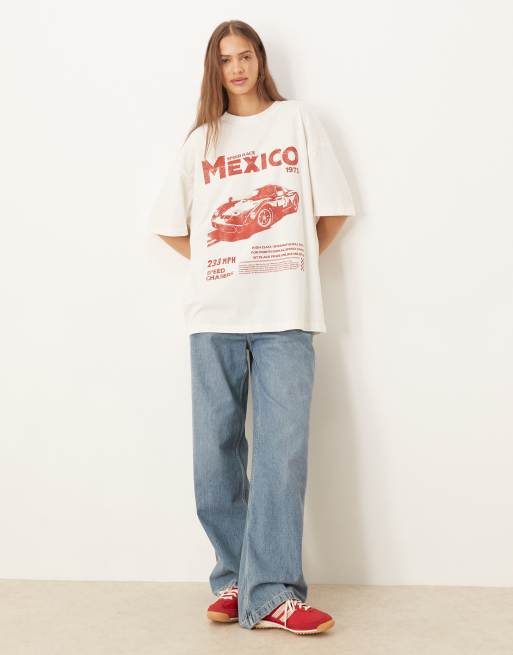 ASOS DESIGN – Oversize-T-Shirt in Creme mit Mexico-Auto-Print