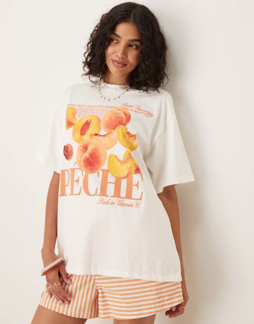 ASOS DESIGN – Oversize-T-Shirt in Creme mit Pfirsich-Grafikprint
