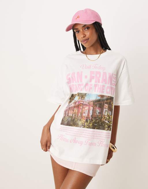 ASOS DESIGN – Oversize-T-Shirt in Cremeweiß mit „San Francisco“-Print