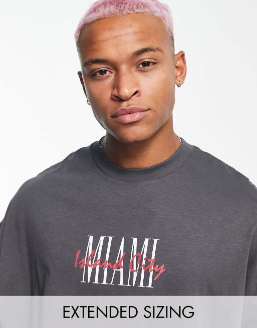 ASOS DESIGN – Oversize-T-Shirt in Dunkelgrau mit Miami-City-Print