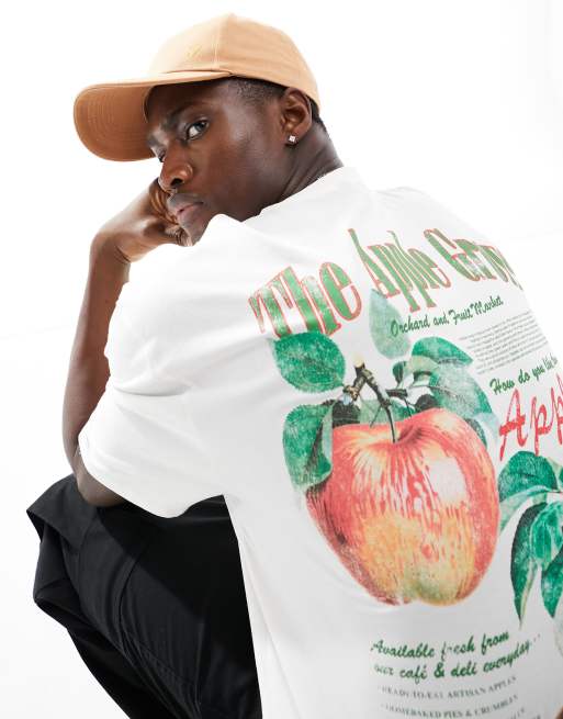 ASOS DESIGN – Oversize-T-Shirt in gebrochenem Weiß mit Apfelprint vorne