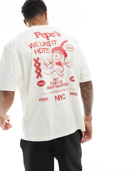 ASOS DESIGN – Oversize-T-Shirt in gebrochenem Weiß mit Chili-Print auf dem Rücken