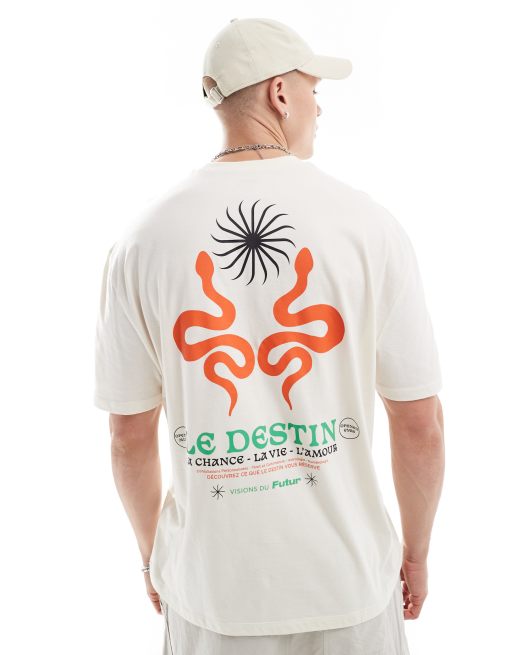 ASOS DESIGN – Oversize-T-Shirt in gebrochenem Weiß mit Himmelskörper-Print auf dem Rücken