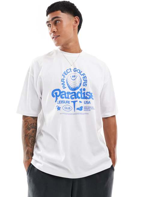 ASOS DESIGN – Oversize-T-Shirt in gebrochenem Weiß mit Print vorne