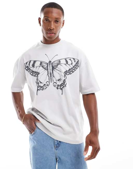 ASOS DESIGN – Oversize-T-Shirt in Grau mit Print vorne
