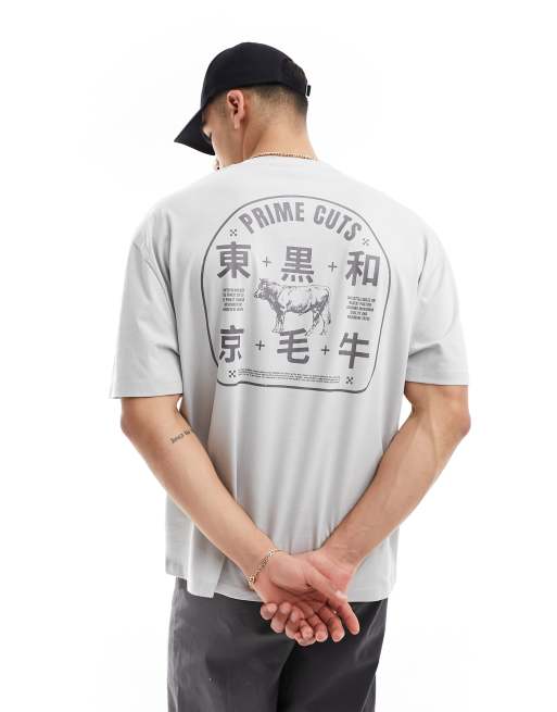 ASOS DESIGN – Oversize-T-Shirt in Grau mit Souvenir-Animal-Print auf dem Rücken
