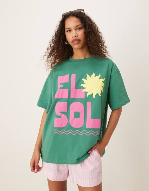 ASOS DESIGN – Oversize-T-Shirt in Grün mit „El Sol“-Print
