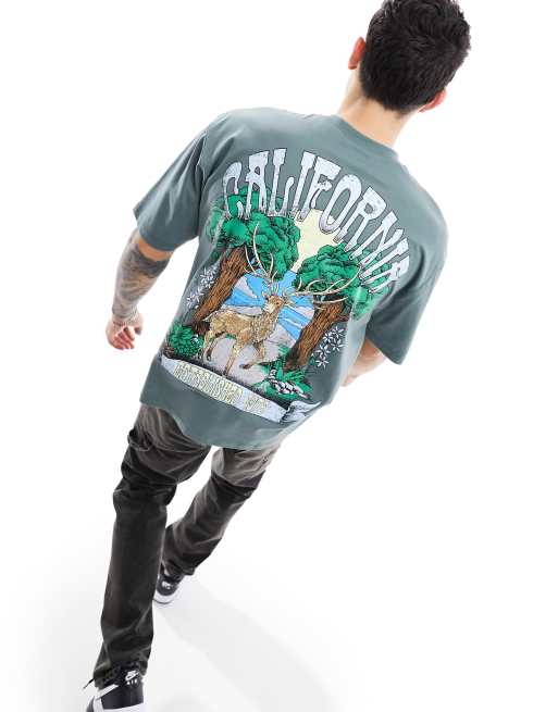 ASOS DESIGN – Oversize-T-Shirt in Grün mit Outdoor-Cartoonprint auf dem Rücken