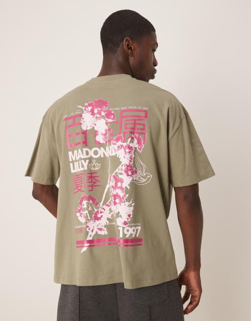 ASOS DESIGN – Oversize-T-Shirt in hellem Khaki mit Blumenprint