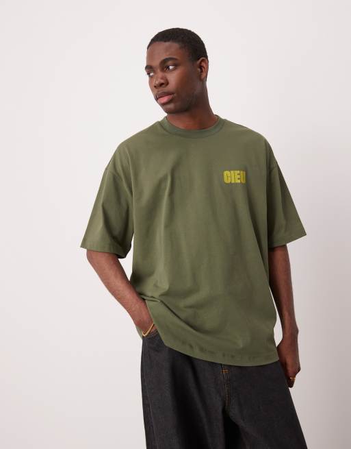 ASOS DESIGN – Oversize-T-Shirt in Khaki mit Brust-Print