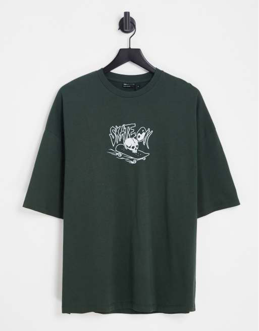 ASOS DESIGN – Oversize-T-Shirt in Khaki mit Skate-Print vorne