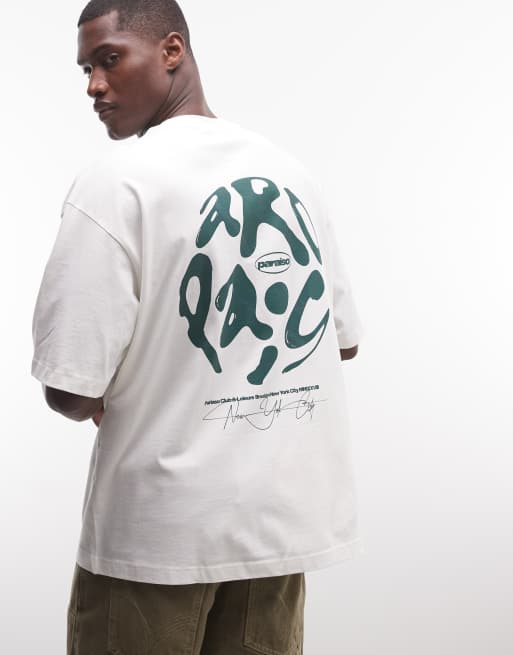 ASOS DESIGN – Oversize-T-Shirt in Kokosmilchweiß mit „Paraiso“-Blasen-Grafik