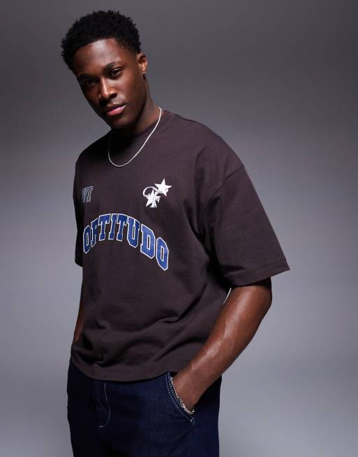 ASOS DESIGN – Oversize-T-Shirt in lockerem Schnitt in Dunkelbraun mit Sport-Print