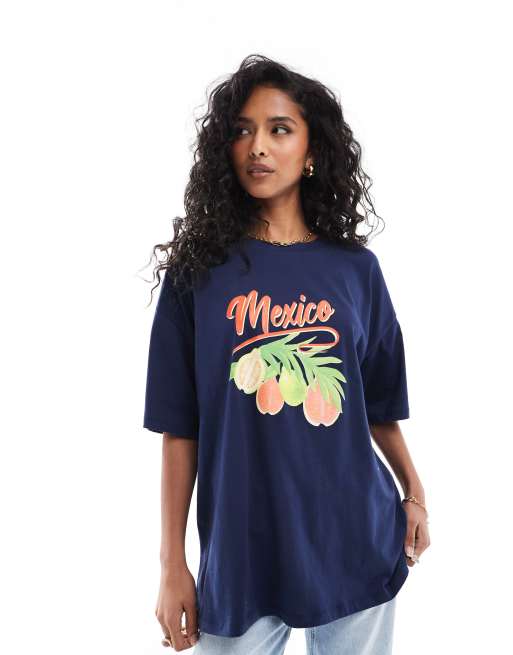 ASOS DESIGN – Oversize-T-Shirt in Marineblau mit „Mexico“-Grafikprint