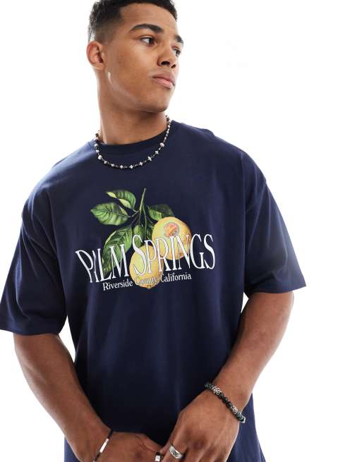 ASOS DESIGN – Oversize-T-Shirt in Marineblau mit Palm Springs-Grafik