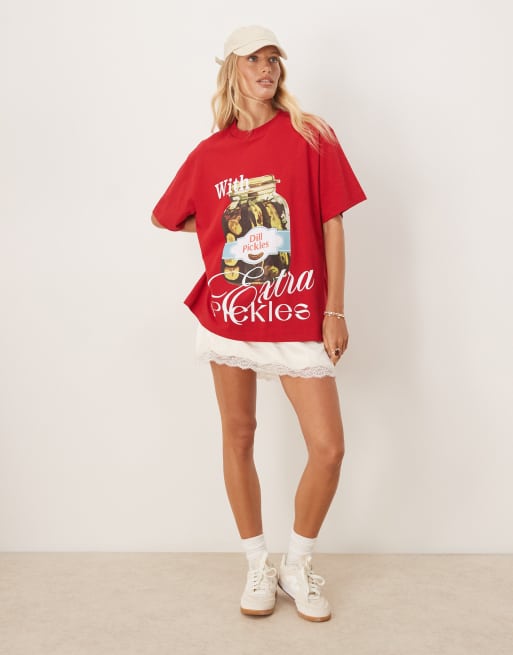ASOS DESIGN – Oversize-T-Shirt in Rot mit „Pickle“-Print