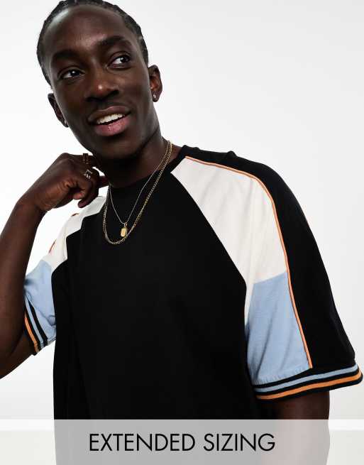 ASOS DESIGN – Oversize-T-Shirt in Schwarz mit Blockstreifen auf den Ärmeln