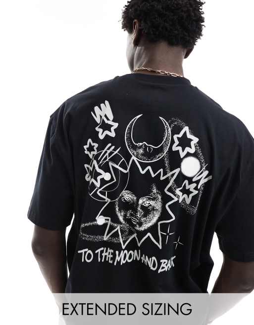 ASOS DESIGN – Oversize-T-Shirt in Schwarz mit Himmelskörper-Rückenprint