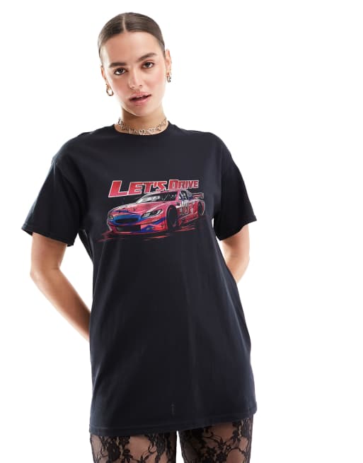 ASOS DESIGN – Oversize-T-Shirt in Schwarz mit Rennwagen-Grafikprint