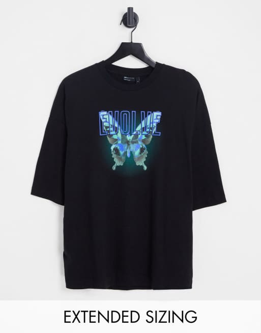 ASOS DESIGN – Oversize-T-Shirt in Schwarz mit Schmetterlingsprint auf der Vorderseite