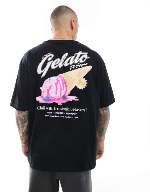 ASOS DESIGN – Oversize-T-Shirt in Schwarz mit sommerlicher Grafik