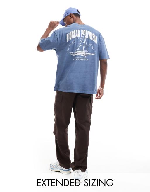 ASOS DESIGN – Oversize-T-Shirt in verwaschenem Blau mit City-Rückenprint