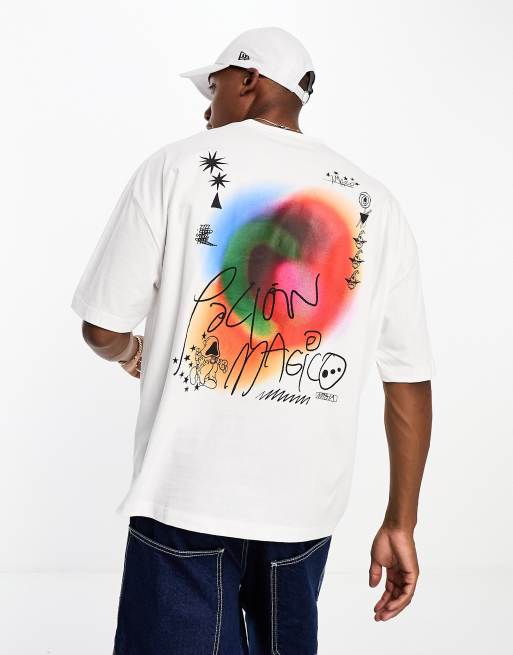 ASOS DESIGN – Oversize-T-Shirt in Weiß mit abstraktem Aufdruck hinten