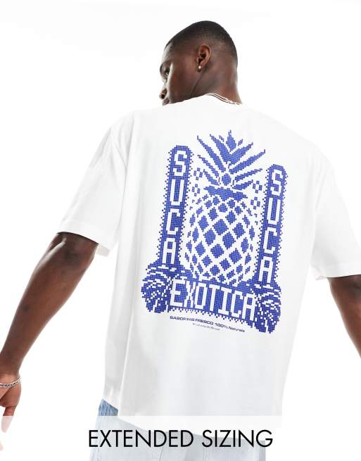 ASOS DESIGN – Oversize-T-Shirt in Weiß mit Ananas-Rückenprint