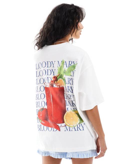 ASOS DESIGN – Oversize-T-Shirt in Weiß mit Bloody Mary Grafik