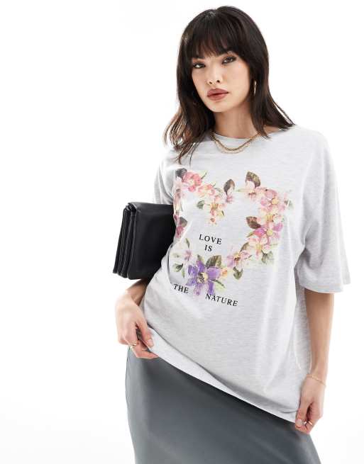 ASOS DESIGN – Oversize-T-Shirt in Weiß mit Blumen-Herz-Grafikprint