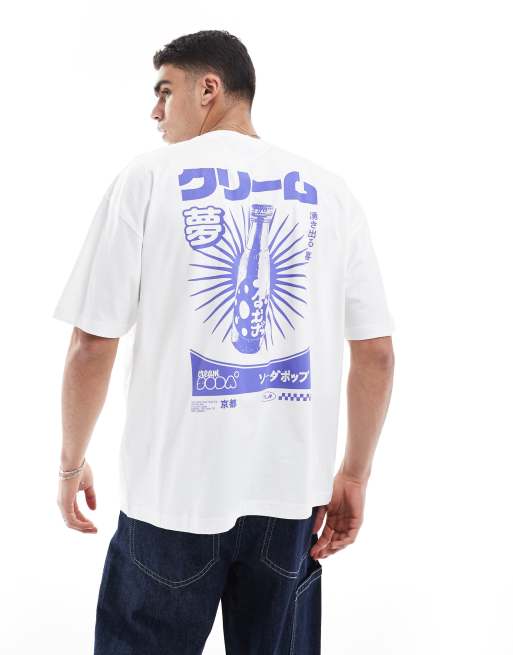 ASOS DESIGN – Oversize-T-Shirt in Weiß mit Cocktail-Grafikprints