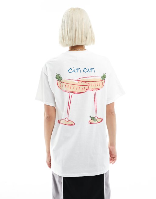 ASOS DESIGN – Oversize-T-Shirt in Weiß mit Cocktail-Print am Rücken