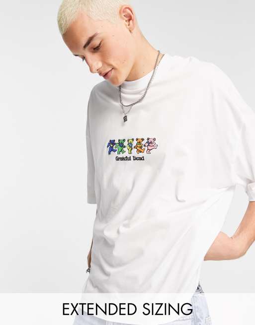 ASOS DESIGN – Oversize-T-Shirt in Weiß mit „Grateful Dead“-Bärchenprint
