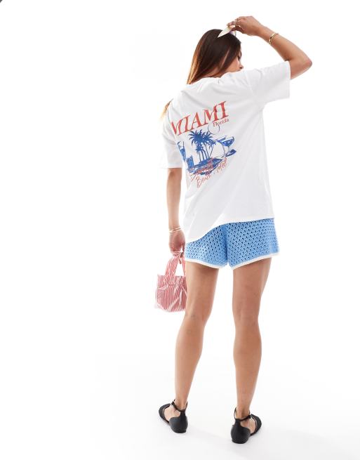 ASOS DESIGN – Oversize-T-Shirt in Weiß mit „Miami“-Grafikprint