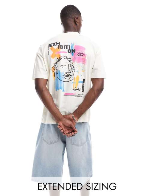 ASOS DESIGN – Oversize-T-Shirt in Wollweiß mit abstraktem Kunst-Print hinten
