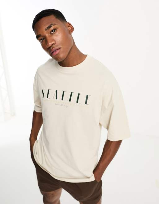 ASOS DESIGN – Oversize-T-Shirt in Wollweiß mit Cityprint vorne