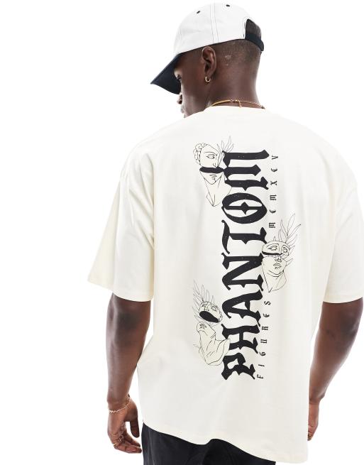 ASOS DESIGN – Oversize-T-Shirt in Wollweiß mit Print entlang der Wirbelsäule